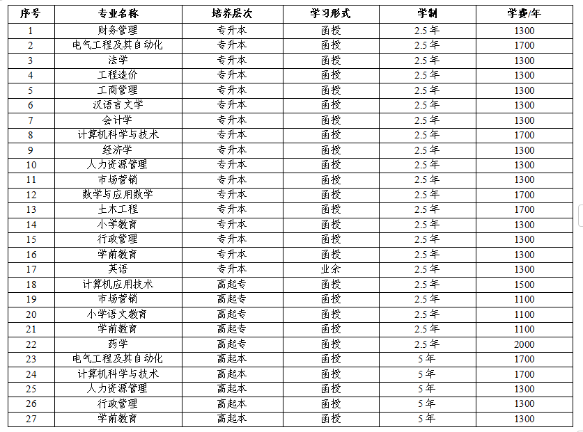 一、许昌学院2024年成人高等教育招生专业及收费标准一览表