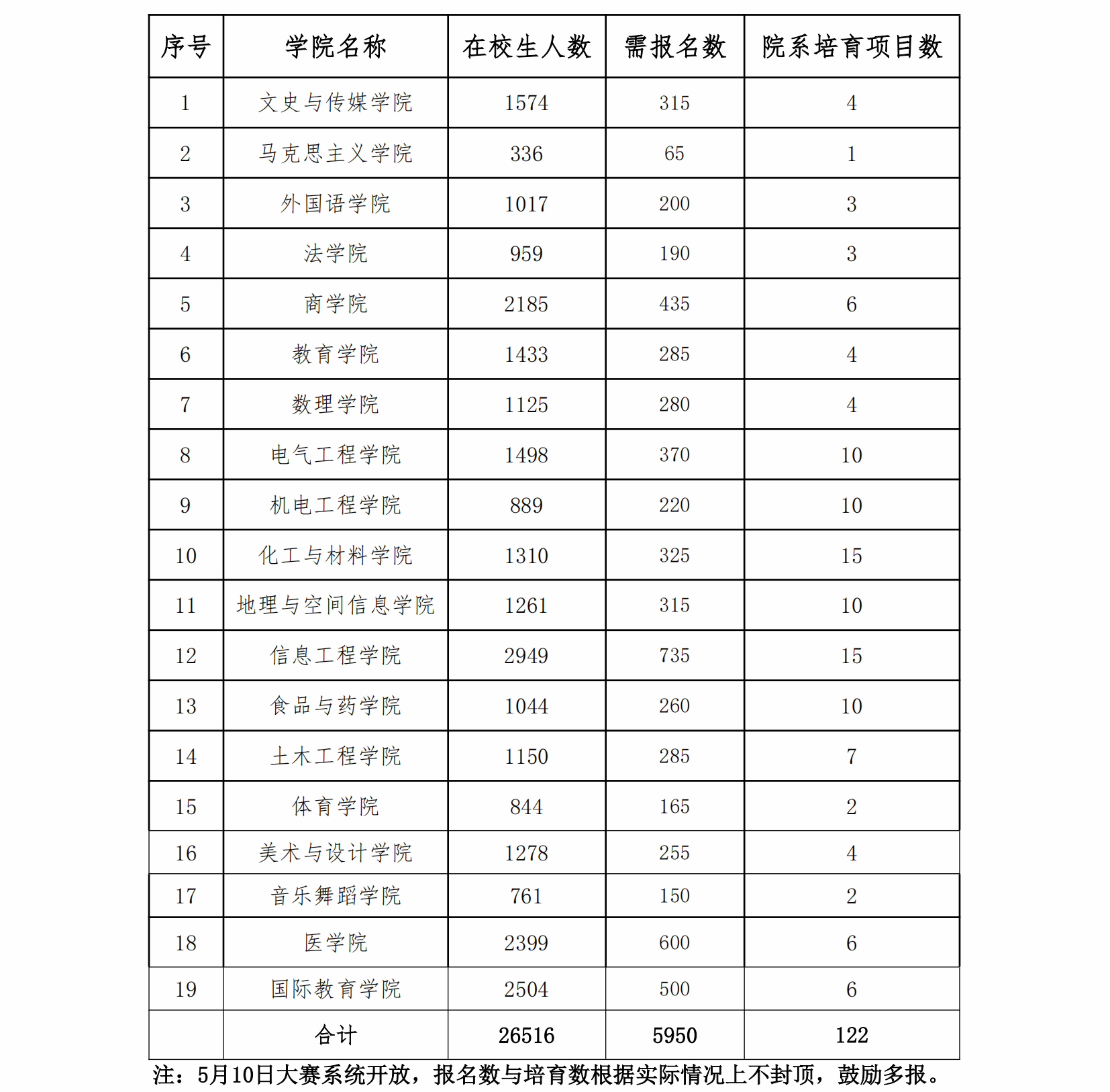 (1)组织学生通过登录全国大学生创业服务网(网址:https://cy.ncss.cn)进行报名,报名系统开放时间为2025年5月9日,报名截止时间为7月1日。根据学校相关文件要求,各二级学院报名项目数和重点培育项目数依据各单位的学生总数及学科情况而定,文科以主赛道和红旅赛道为主,项目报名数约为学生总数的20%左右;理、工、医以主赛道和产业赛道为主,项目报名数约为学生总数的25%左右;重点培育项目数根据学科及往届获奖数等情况设定。