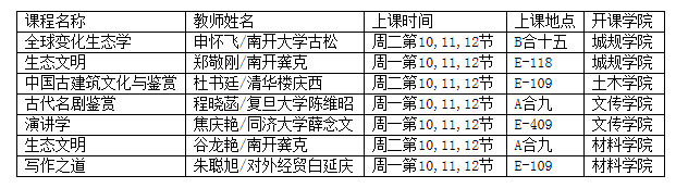 4.以下课程已通过遴选确定上课名单,选课名单已按照任课教师报送结果导入教学班级,学生无需再次选修该课程,也不得改选该时间段其它课程。