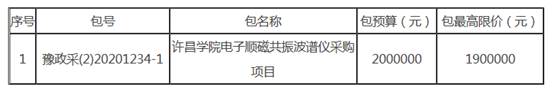 2、项目名称:许昌学院电子顺磁共振波谱仪采购项目