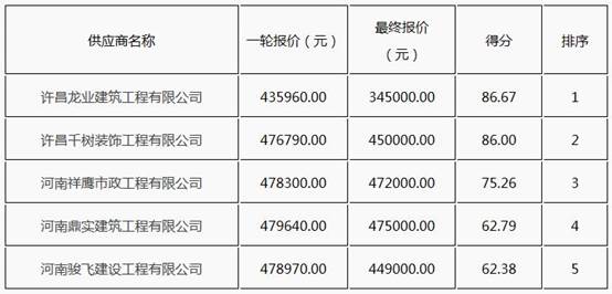 2、采购人确认成交供应商:许昌龙业建筑工程有限公司,成交金额:345000.00元,地址:许昌市建安区五女店镇二郎庙社区。