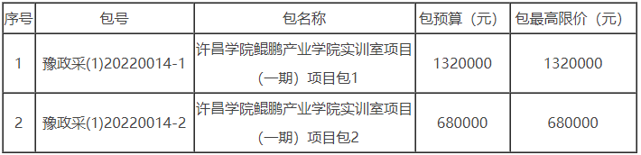 2、项目名称:许昌学院鲲鹏产业学院实训室项目(一期)项目