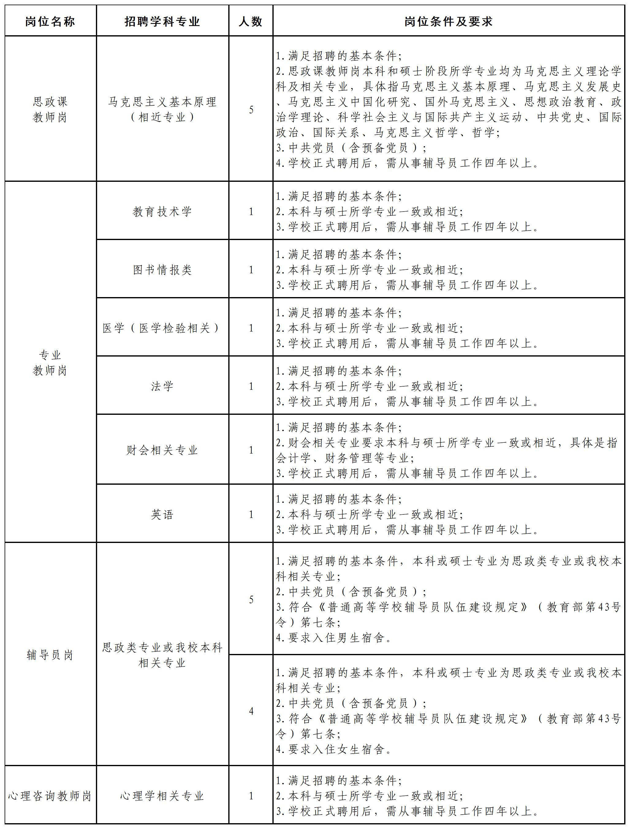 重要提示:招聘工作中具体事宜,请应聘人员随时关注我校网站(若应聘人员不及时阅读相关信息,造成的一切后果由本人承担)。
