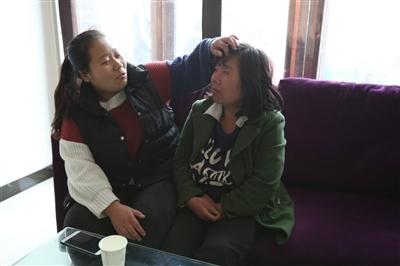10月31日,在时代温泉公寓,唐盼盼(左)找回了走失两天的母亲。记者 孙学涛 摄