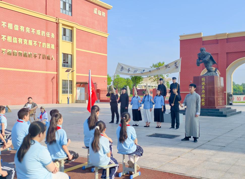 图为《跨越时空的青春对话》剧照(许昌市杨根思小学演出现场)