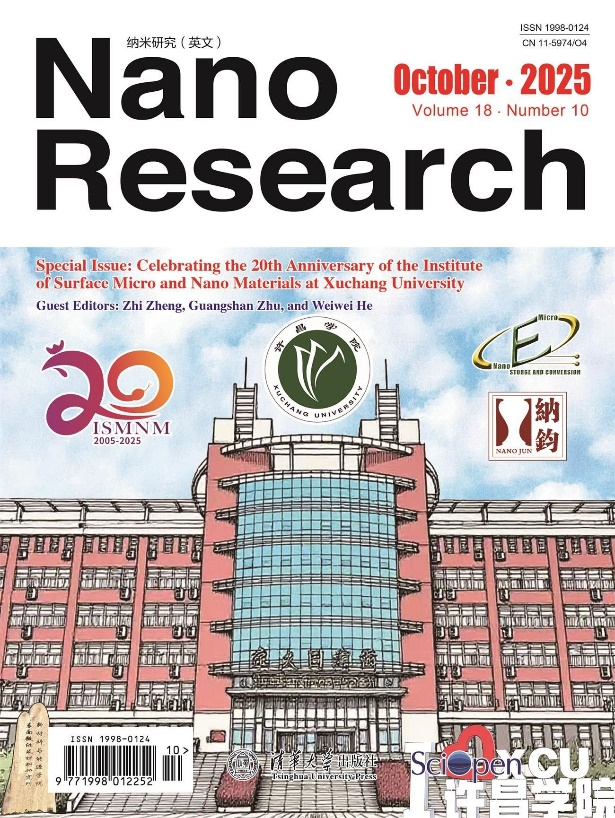 近日,国际知名学术期刊《纳米研究(英文)》推出 “庆祝许昌学院表面微纳米材料研究所成立20周年”主题纪念专刊(第18卷第10期)。专刊收录了96 篇论文(含综述和研究性文章),作者来自中国、澳大利亚、加拿大、美国以及欧洲等全球100多个高校和研究机构,内容涵盖微纳米材料、纳米酶、光催化、电催化、新能源材料、生物医用纳米材料等多个前沿方向,集中展示该领域的最新研究成果。该专刊由郑直教授、朱广山教授、何伟伟教授担任客座编辑,并以“表面微纳米材料:许昌学院二十年的创新、合作与转化”为题撰写编者按。