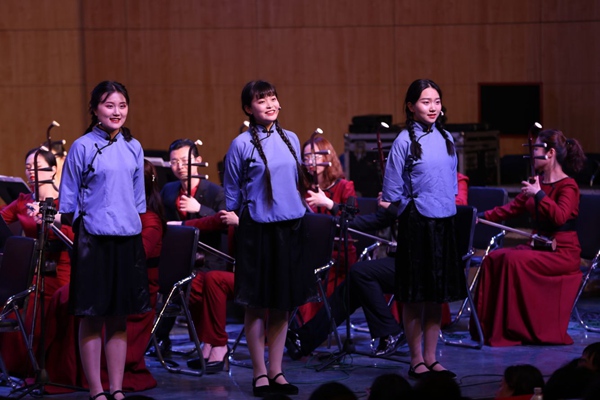演奏会现场,演奏者们还用琵琶、二胡、曲笛、柳琴等传统乐器,将浓厚的爱国主义情怀演绎得淋漓尽致。