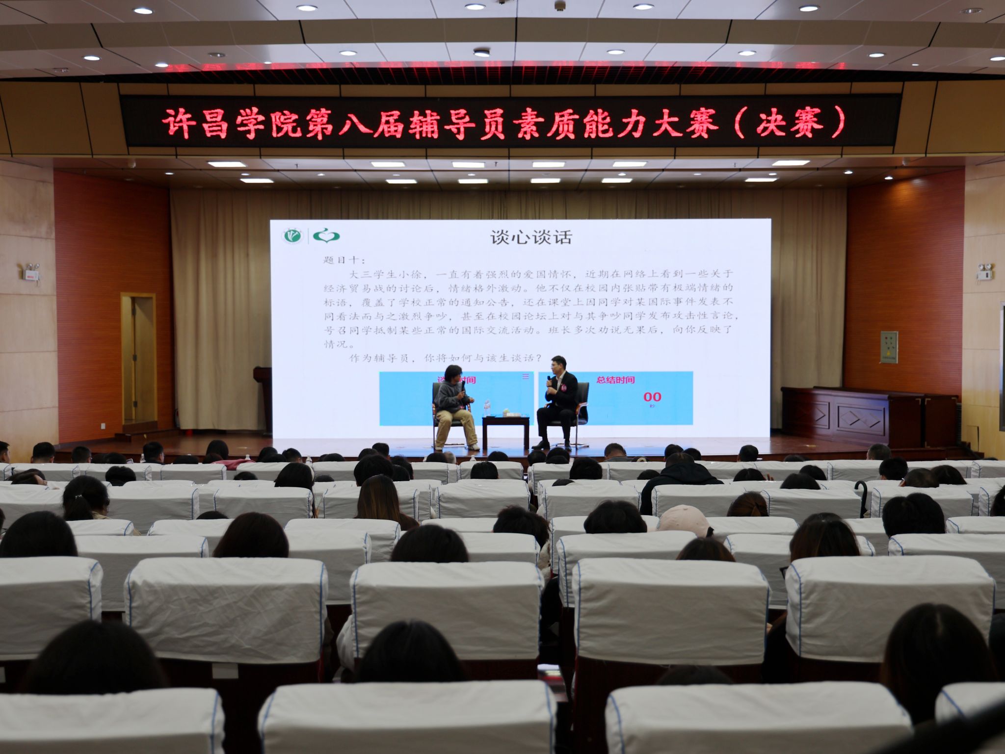 本次大赛以“以赛促学、以赛促建、提升素养、赋能成长”为目标,紧扣辅导员核心职业能力要求,对标国赛标准,分为初赛、复赛和决赛三个阶段,共设置了基础知识测试、学情分析、案例研讨和谈心谈话等四个环节,重点考察辅导员的思想政治理论和教育引导水平、解决与学生工作相关问题的能力。大赛自10月份启动以来,共有60余名辅导员报名参赛,经过初赛和复赛的角逐,有10名辅导员成功入围决赛。