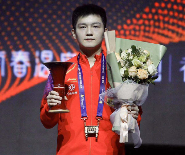 在12月15日结束的2019年国际乒联世界巡回赛总决赛上,樊振东夺得男单冠军后,高高举起了冠军奖杯。这只奖杯是一件钧瓷作品,奖杯主体造型借鉴河南二里头文化时期青铜礼器“觚(音gū)”的外轮廓,由许昌学院设计艺术学院设计制作。