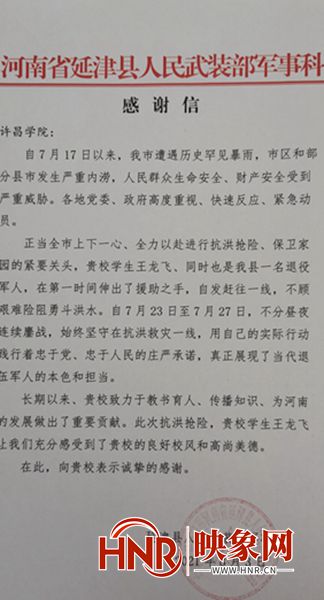 映象网讯(记者 康世保 见习记者 郭歌 通讯员钟伟平 杨哲)近日,许昌学院陆续收到来自省内各级人民政府、基层党组织、共青团、青年志愿者协会、社区居民委员会等单位发来的表扬信和感谢信。信中,各单位对许昌学院学子积极参与抢险救灾和疫情防控工作中的英勇表现提出表扬,并对许昌学院的人才培养和育人方式表示肯定。