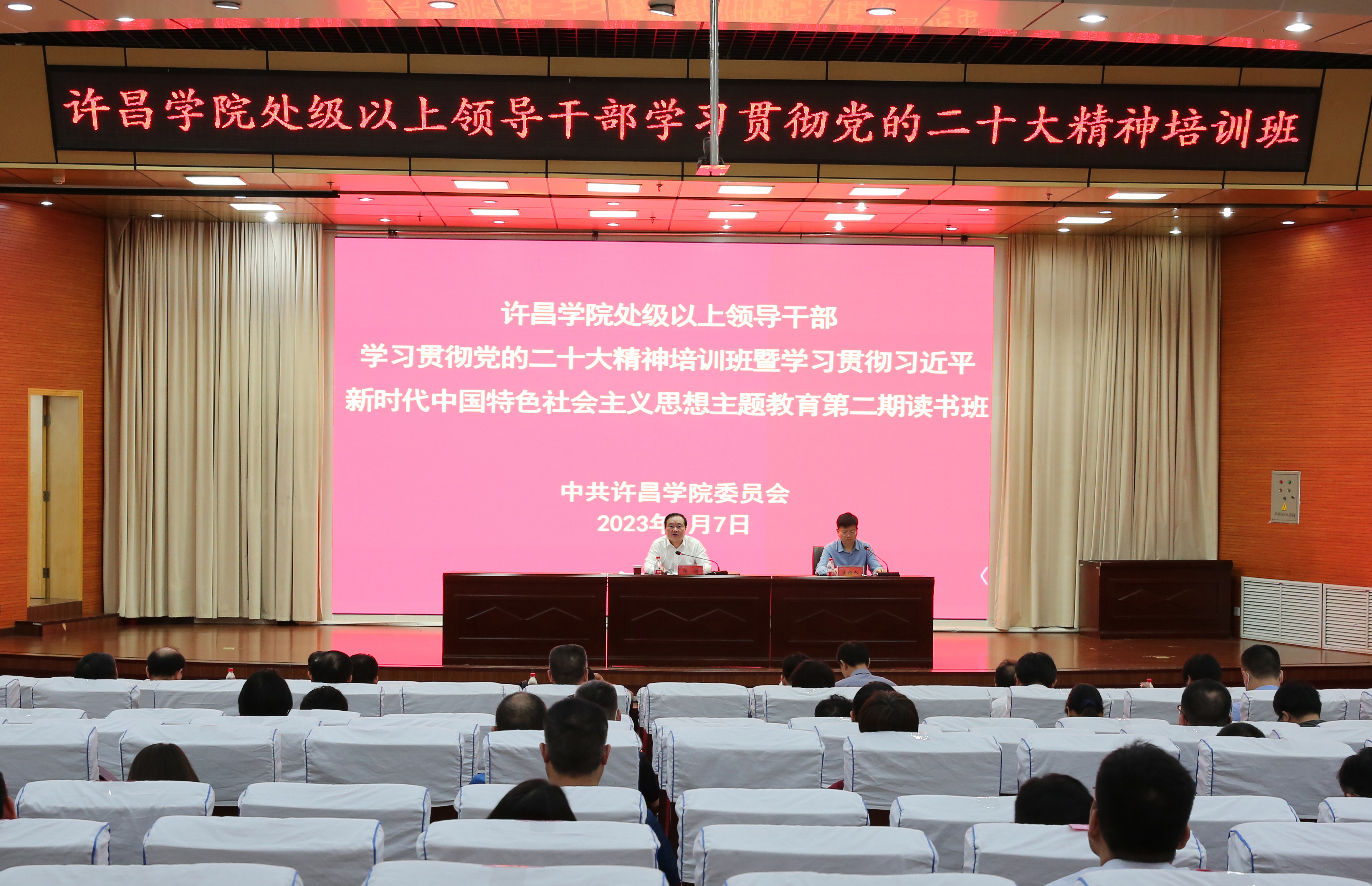 6月7日上午,许昌学院学习贯彻党的二十大精神培训班暨学习贯彻习近平新时代中国特色社会主义思想主题教育第二期读书班开班。校党委书记郭涛为广大党员干部做专题辅导报告。全体在校校领导、中层干部、主题教育领导小组办公室成员参加学习。会议由党委副书记、工会主席梁予昉主持。