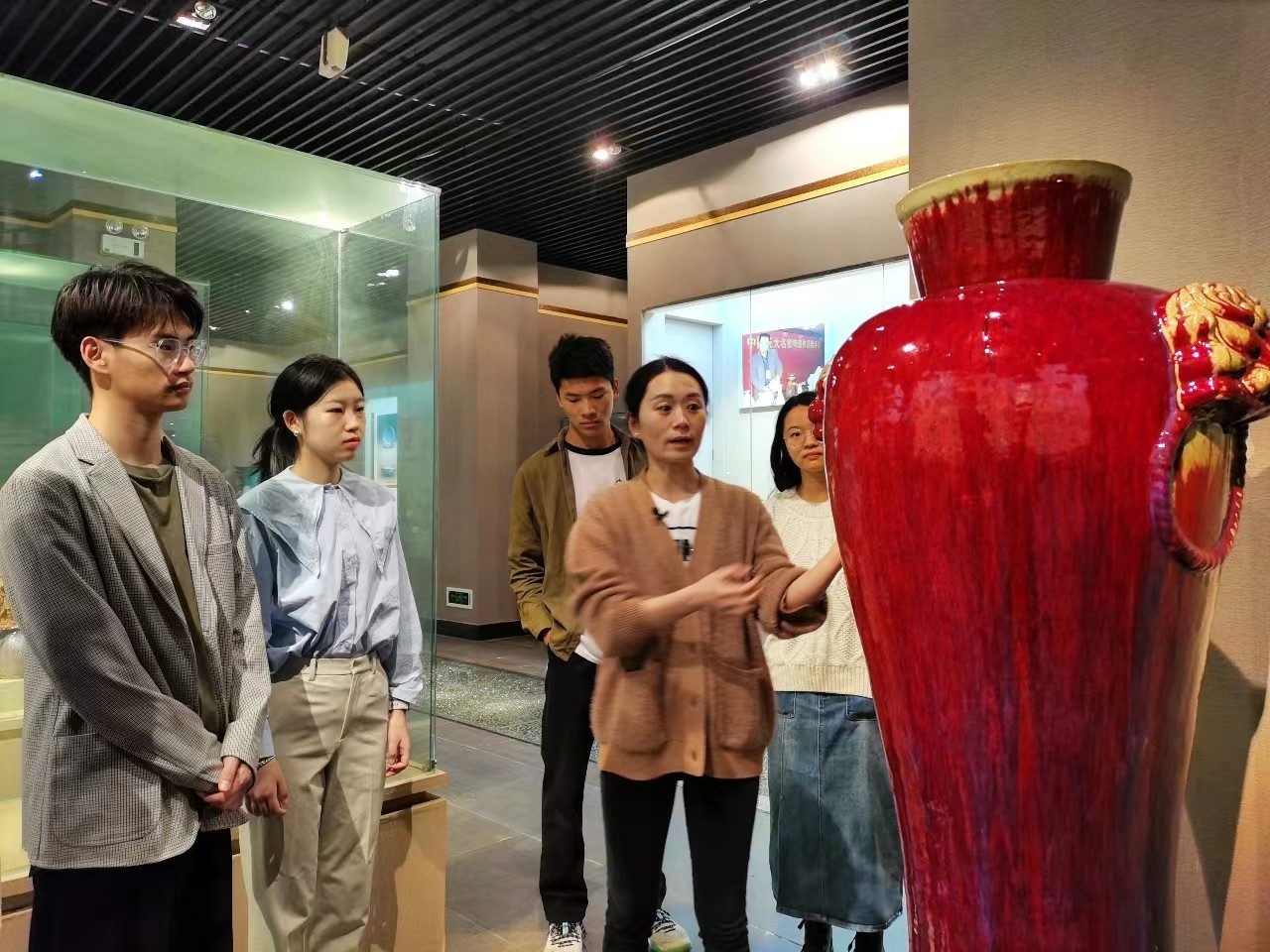 除了挖掘瓷区的优势资源,课程组还把课堂搬到了博物馆、实训室。2009年,许昌学院建成钧瓷文化艺术馆,展品共计1000余件,演绎钧瓷的发展历程,彰显钧瓷的不同风格。《钧瓷设计》课程组积极利用这一资源,让课堂形式更加丰富多彩,让授课内容更加生动形象。在日常教学中,学生走进博物馆,近距离观摩瓷片的釉色、瓷胎的厚度,教师将钧瓷设计的地域性、艺术性、文化性、应用性和前沿性进行综合的传授。