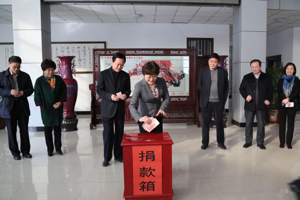 1 月 18 日下午,我校“送温暖、献爱心”捐助仪式在办公楼一楼大厅举行。院长赵继红,副书记马超,副院长赵正风、郑直、黄怡俐、郭涛,纪委书记罗凤英,工会主席杜志傲和机关各部门的同志们参加了捐助仪式。捐助仪式由工会副主席路运洪主持。