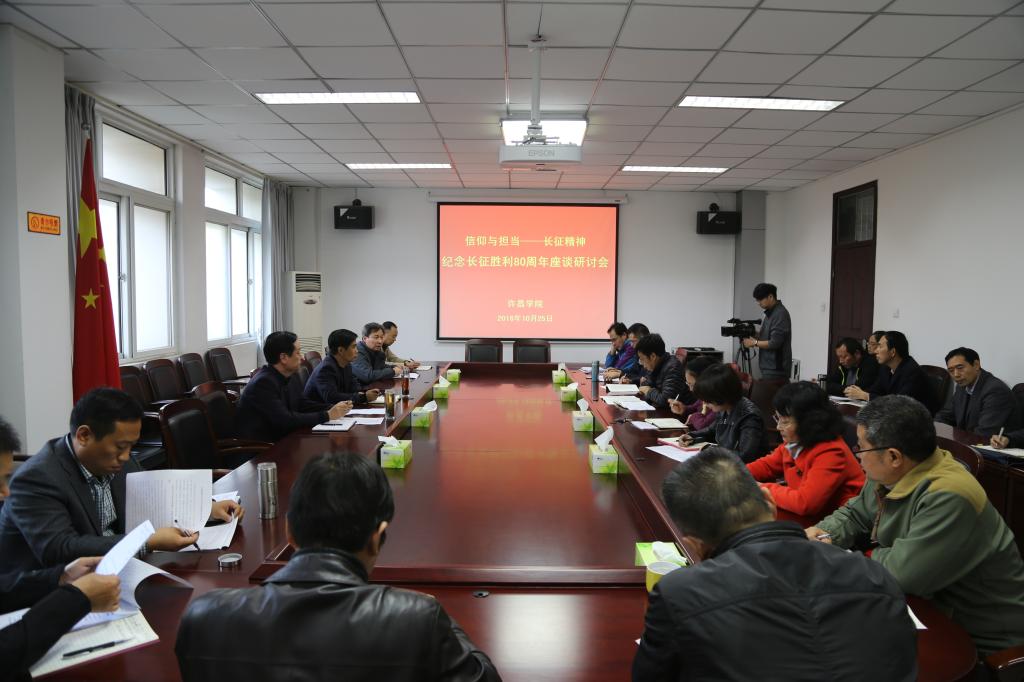 10月25日,我校在办公楼第四会议室举行“信仰与担当——长征精神”纪念长征胜利80周年座谈研讨会。党委副书记马超出席会议。党委组织部、统战部、党校、党委宣传部、党委学工部、保卫部、团委、离退休工作处等部门负责人、文学与传媒学院、旅游(历史文化)学院、外国语学院、数学与统计学院、食品与生物工程学院、新材料能源学院等学院的党总支书记和马克思主义学院的师生代表参加会议并发言。会议由党委宣传部部长冯晓民主持。