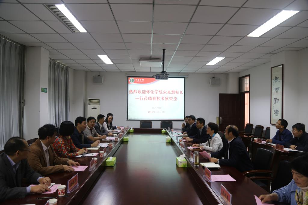 10月19日,怀化学院校长宋克慧等一行12人来我校考察交流。院长赵继红、副院长崔斌会见了来访客人,并与客人进行了座谈交流。院长办公室、校地合作办公室、教育科学学院、数学与统计学院、信息工程学院、工程技术中心、音乐舞蹈学院、文学与传媒学院、商学院、化学化工学院等相关部门负责人参加了座谈交流。