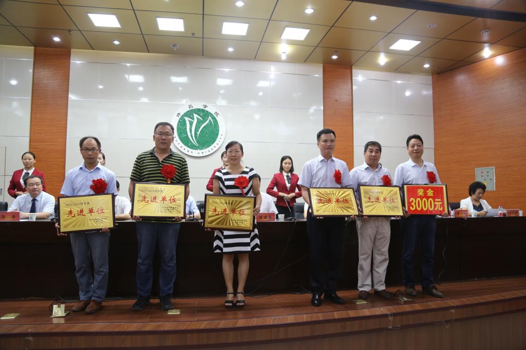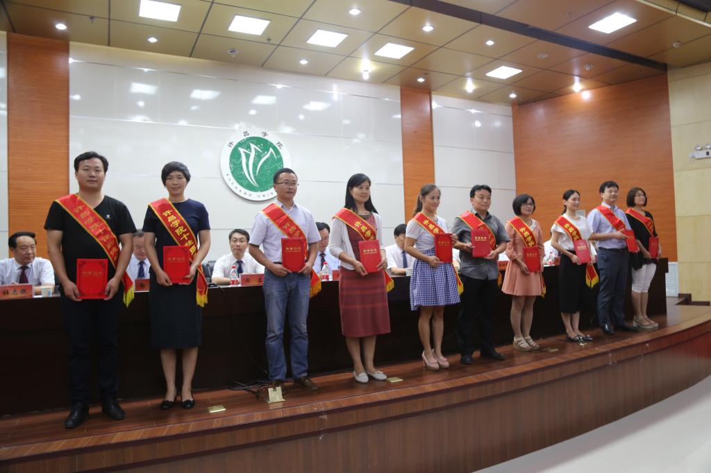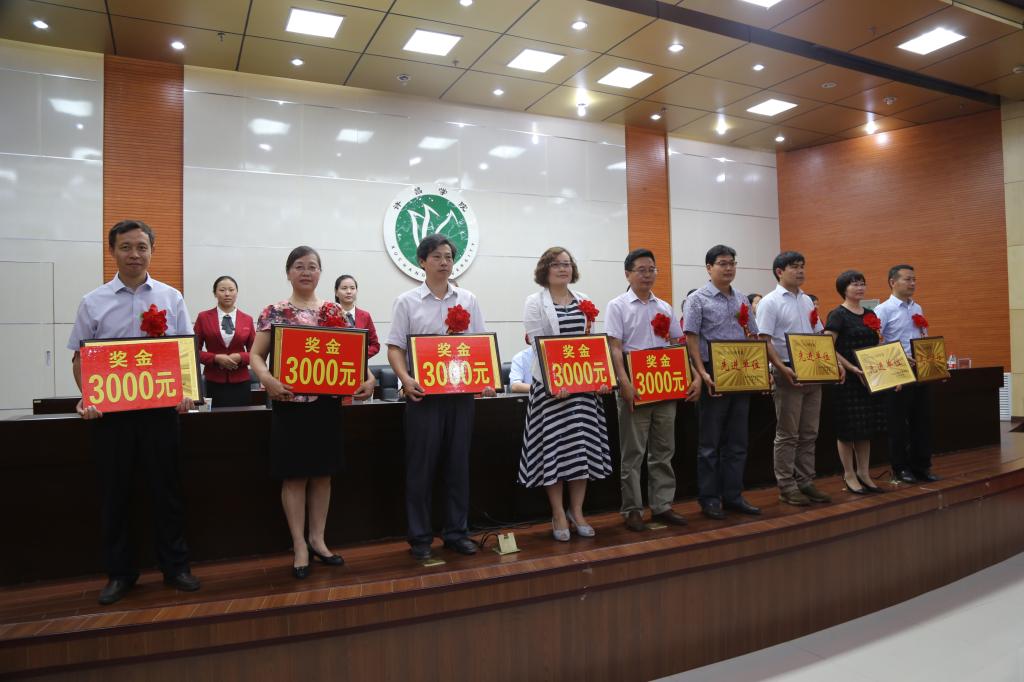 会上,赵正风副院长宣读《关于表彰先进单位、优秀教师和优秀教育工作者的决定》。郑直副院长宣读了《关于表彰第九届教学名师和第八届教学新秀的决定》以及《关于表彰第六届“十佳青年教师标兵”、2015—2016年度师德先进个人的决定》(表彰名单详见信息门户网站相关文件)。崔斌副院长宣读了工龄满三十年教职工名单,并通报一年来我校教职工荣获省级以上荣誉情况。出席会议的学校领导为获得表彰的先进单位和先进个人颁发了奖牌、奖状和荣誉证书。