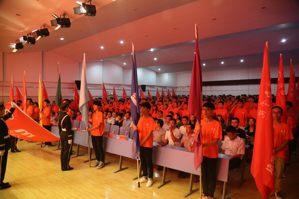 仪式上,与会领导为60支校级实践队授旗,同学们挥舞着的赤、橙、黄、绿、青、兰、紫七种彩旗,代表了我校2016年暑期社会实践的7个重点开展方向,也象征我校2016大学生暑期社会实践活动即将谱写的彩虹篇章。