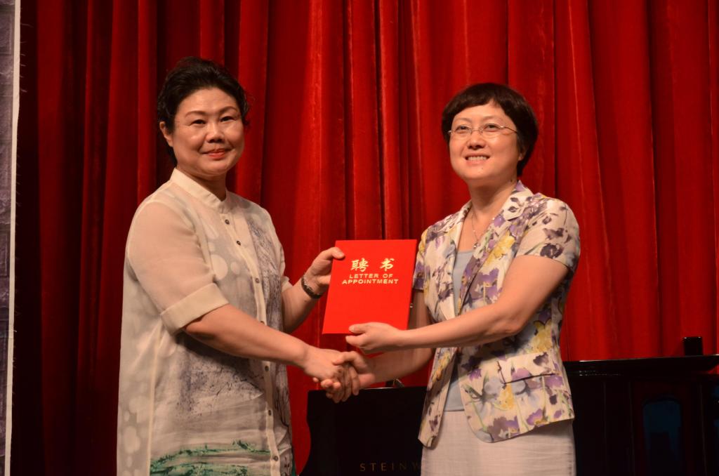 在音乐会之前的聘任仪式上,院长赵继红教授为韩梅颁发客座教授聘书,副院长崔斌教授致辞,韩梅教授在讲话中表达对许昌学院的殷切祝愿,并表示,作为音乐舞蹈学院的客座教授,她将在我校学科建设,硕士点培育等方面提供最大帮助,并会加大学术交流力度,促进两校之间的合作。
