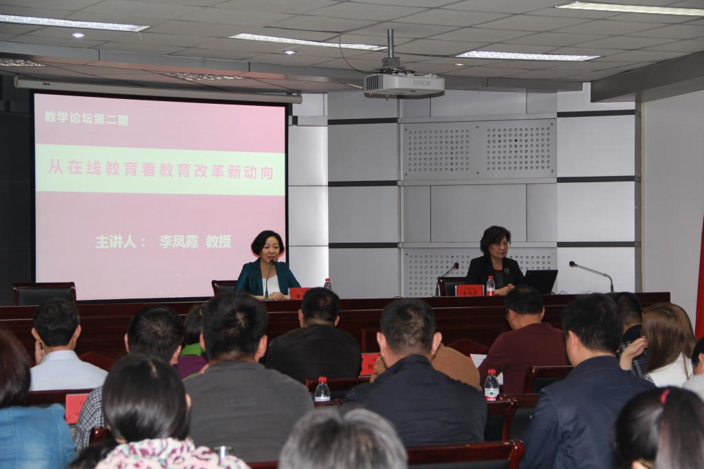 5月27日,由教务处主办、信息工程学院承办的我校第二期教学论坛在办公楼第三会议室举行,北京理工大学博士生导师李凤霞作了《从在线教育看教育改革新动向》的主题报告,来自河南大学、河南理工大学、新乡医学院、南阳理工学院等相关院校的30多位代表和我校部分教师100余人参加了论坛。论坛由许我校副院长黄怡俐教授主持。