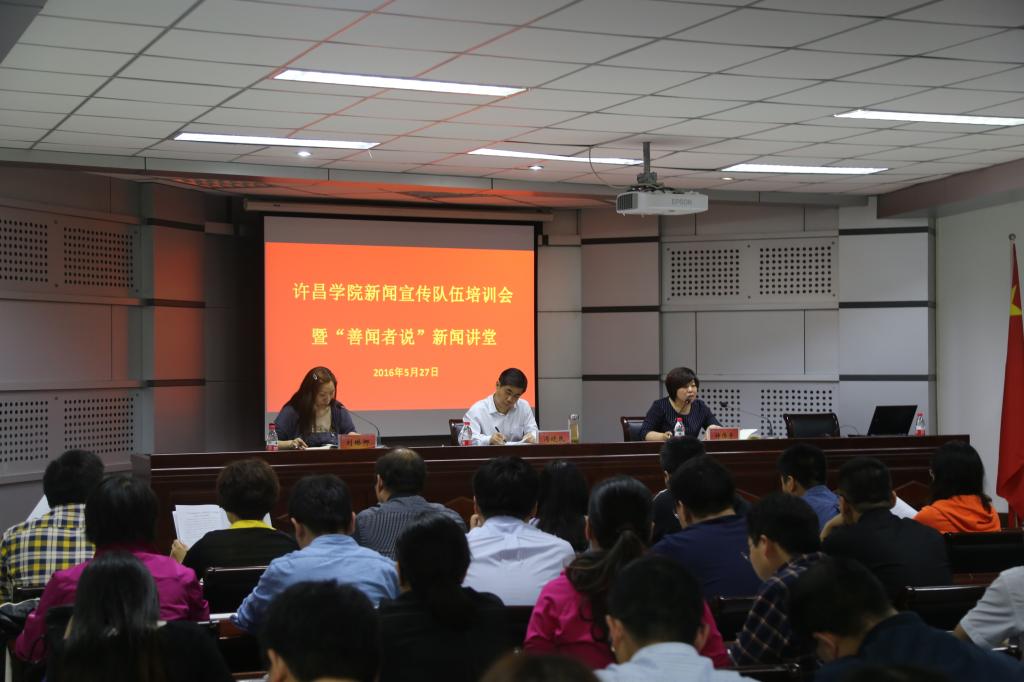 为进一步加强我校新闻宣传队伍建设,着力提高人员新闻素养和业务水平,形成新闻宣传合力,更好服务学校中心工作,营造学校发展的良好舆论氛围,5月27日下午,我校在办公楼第三会议室举办新闻宣传队伍培训暨"善闻者说”新闻讲堂活动。党委宣传部部部长(新闻中心主任)冯晓民,大河报许昌站站长杜文育,校报编辑部主任刘琳娜,党委宣传部副部长(新闻中心副主任)钟伟平参加会议,各二级学院党总支副书记、全校各单位新闻通讯员(网络信息员)、各校媒老师和学生代表参加会议。校报编辑部主任刘琳娜主持会议。