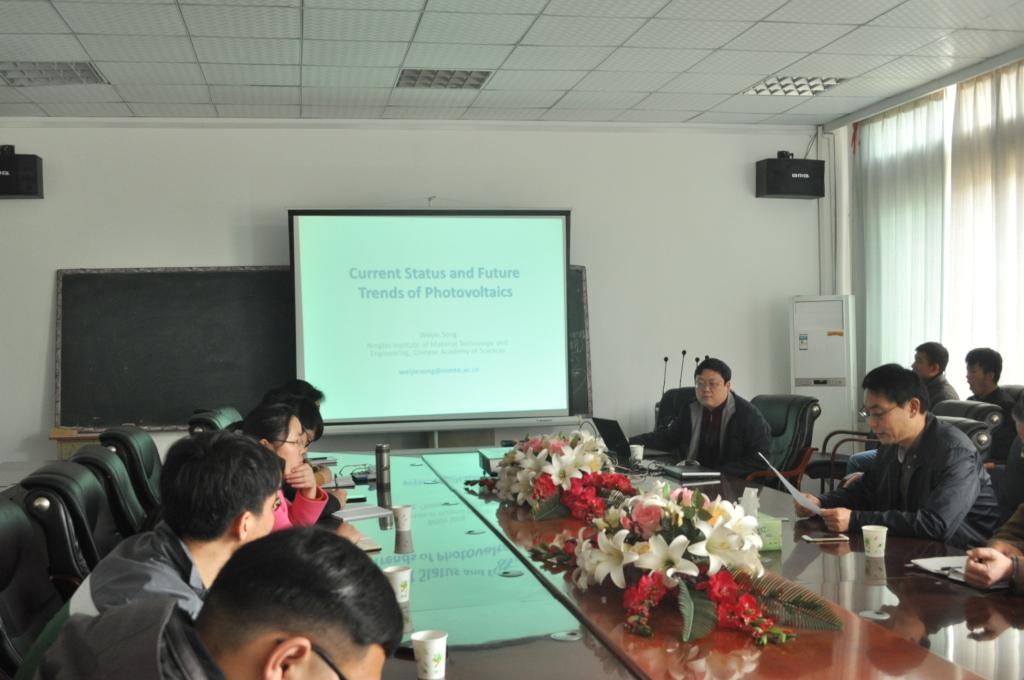 4月12日,中国科学院宁波材料技术与工程研究所宋伟杰研究员应邀到我校进行学术交流,并做了《光伏之我见》的学术报告。河南省微纳米能量储存与转换材料重点实验室的部分师生参加了报告会。报告会由我校副院长郑直主持。