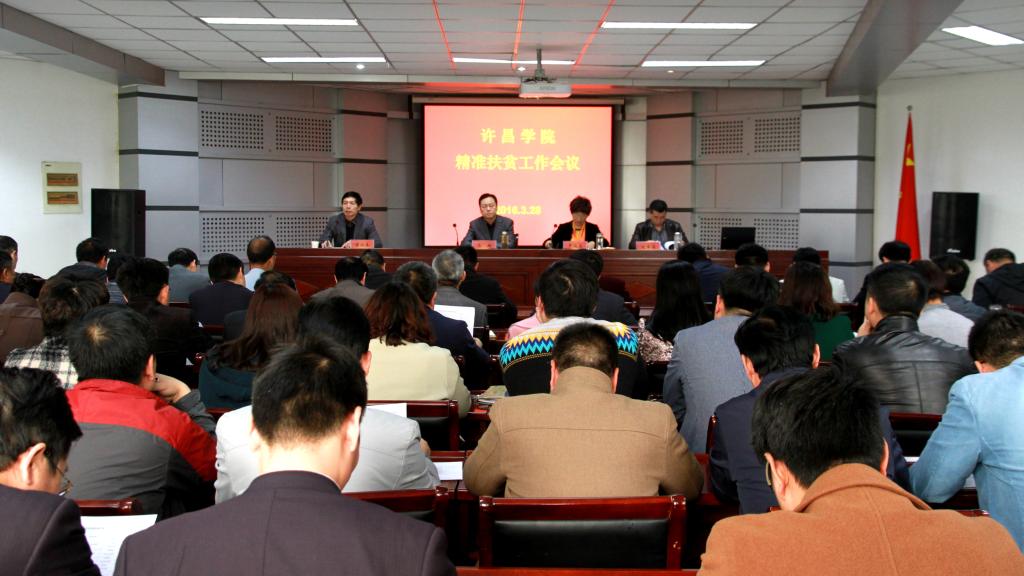 会上,纪委书记罗凤英传达了中央、省委扶贫开发工作会议精神及工作情况, 重点介绍了许昌市扶贫开发及我校定点扶贫工作情况。罗书记指出,我校驻村工作队3年多来,结合实际,积极工作,攻坚克难,效果显著,不但使我校定点扶贫的西华县后石羊村一举摘掉贫困村帽子,还使该村成为周口市美丽乡村建设试点村。2015年8月,我校选派刘军伟同志到第一书记帮扶村—许昌县艾庄乡袁庄村开展驻村帮扶工作。经过半年多的努力,使得袁庄村在组织建设、经济发展、村容整洁、乡风文明、和谐稳定、便民惠民等方面取得了一定成绩。下一阶段,我校将扎实开展为期两年的精准扶贫工作。