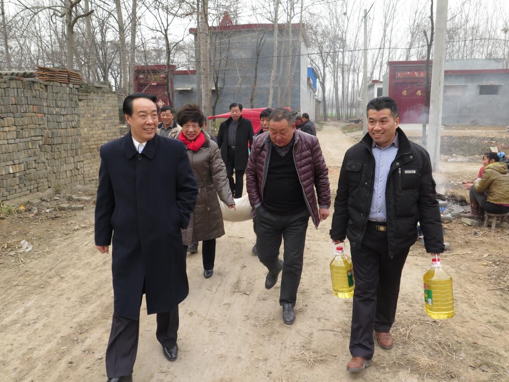 1月20日、21日,校纪委书记罗凤英、工会主席杜志傲带领扶贫工作队员们一行到我校定点帮扶的许昌县艾庄乡袁庄村和西华县黄桥乡后石羊村进行节前慰问,代表许昌学院为困难群众送去米、面、油等年货,并为他们送去慰问金,帮助困难群众度过一个温暖、祥和的春节。