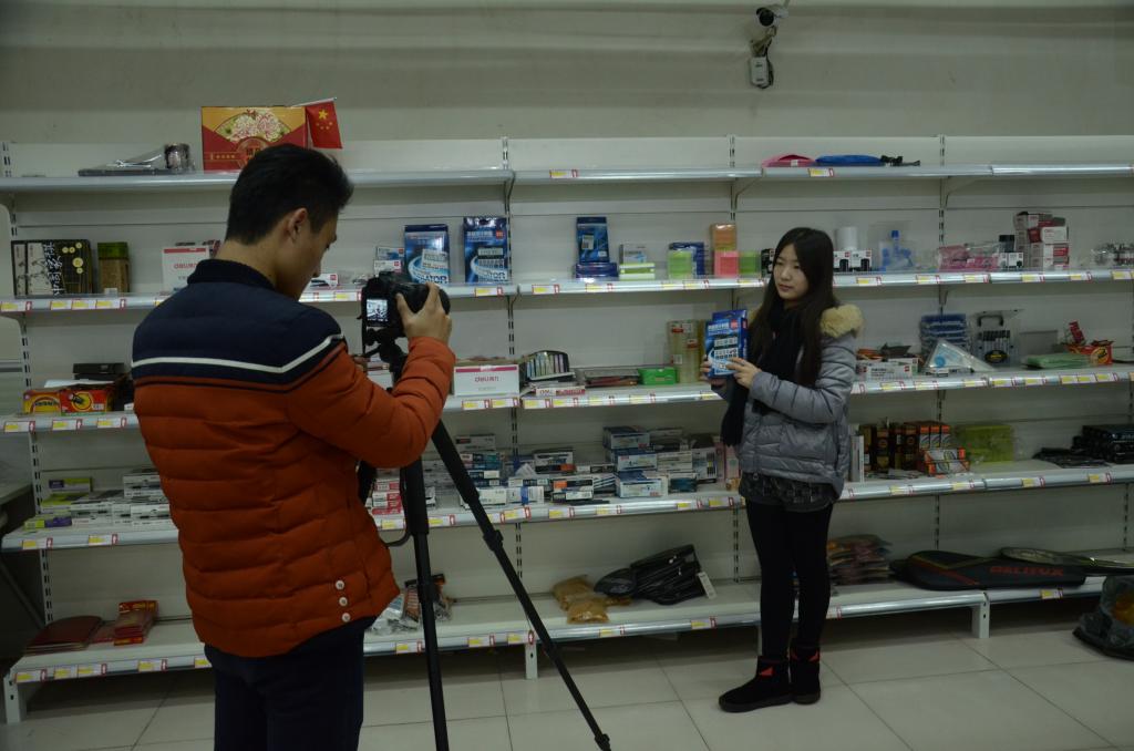 美术学院同学正在拍摄广告作品