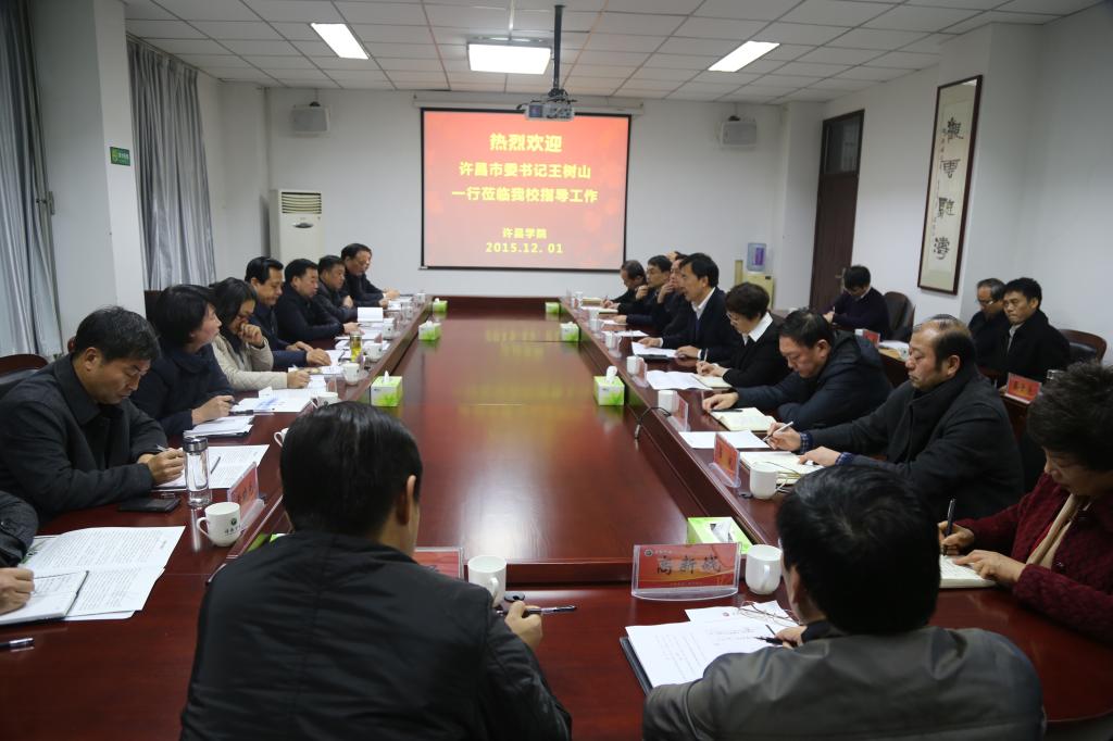 ,许昌市委书记王树山在市委常委、市委秘书长熊广田和副市长秦春梅等陪同下,到我校调研指导工作。学校领导赵继红、马超、赵正风、郑直、崔斌、郭涛、罗凤英、杜志傲等参加调研座谈会。