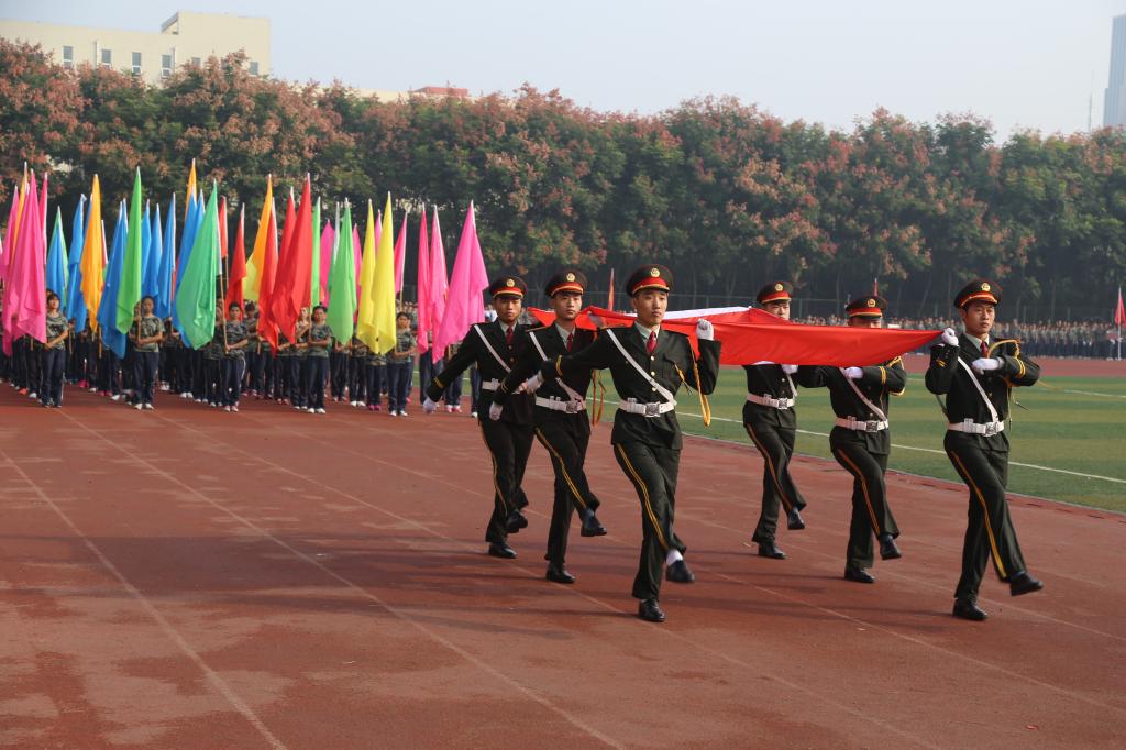 8时30分,仪式正式开始。伴随着雄壮的检阅进行曲,入场分列式表演开始。各院(部)2015级6000余名新生在许昌学院校旗和院部旗帜的引导下,精神抖擞地迈着正步,高喊口号,依次走过主席台接受检阅。分列式结束后,2015级新生还进行了军训科目表演,体育学院等单位还选送了跆拳道、啦啦操等精彩的节目演出。