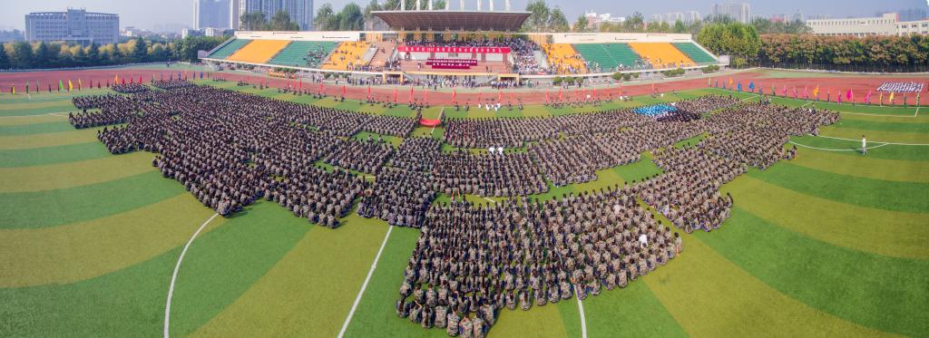 9月25日上午,我校在羽飞田径场隆重举行许昌学院2015级新生军训会操暨开学典礼。校领导赵继红、马超、张建军、崔斌、黄怡俐、郭涛、罗凤英、杜志傲,中国人民解放军某部营长张鹏等出席仪式。学校各院(部)、各机关部门负责人在主席台就座。全校各院(部)主管学生工作的领导、2015级的辅导员、班主任、校友代表和全体新生6000多人参加会操活动。仪式由院长办公室主任陈遂德主持。