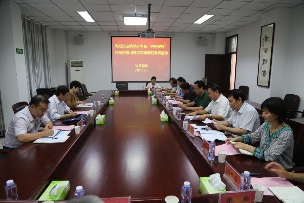 9月6日,省教育厅政法处调研员孙殿军一行三人莅临我校,对秋季开学工作暨“护校安园”行动落实情况进行督查。我校在办公楼第一会议室召开专题汇报会,校党委副书记马超、副院长赵正风、许昌市教育局副书记宋平会等出席汇报会,党办、院办、宣传部、教务处、学生处、学生资助中心、后勤集团、保卫处、网络管理中心等部门负责同志参加会议。会议由党委副书记马超主持。