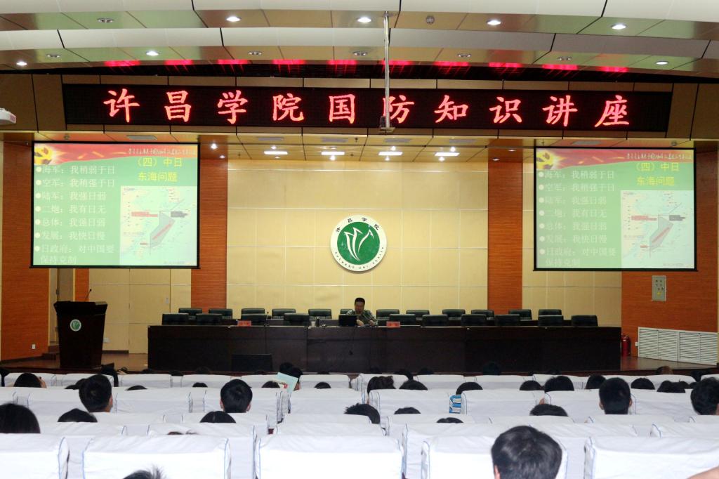 为进一步加强大学生对我国国家安全形势的认识,增强国防意识,激发爱国热情,树立居安思危的忧患意识,我校于5月26日在我校学术报告厅举行了“从近代民族命运看强军梦时代蕴义”国防知识讲座。此次讲座特邀许昌市魏都区武装部部长房鹏同志作报告。