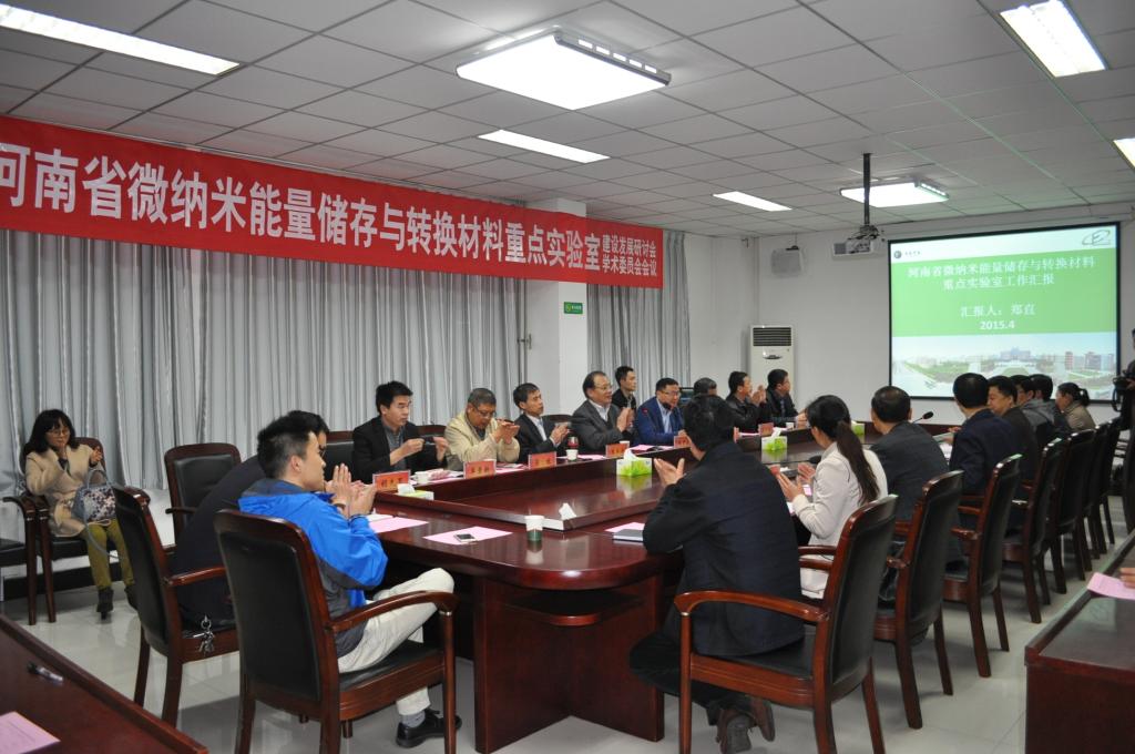 河南省“微纳米能量储存与转换材料”重点实验室2015年度学术委员会会议暨建设发展研讨会于4月19日至4月21日在我校顺利召开。中国科学院院士褚君浩教授、清华大学分析测试中心常务副主任朱永法教授、吉林大学朱广山教授、中国科学院长春光学精密机械与物理研究所单崇新教授、华中师范大学张礼知教授、福州大学王心晨教授、电子科技大学向勇教授、河南大学特种功能材料教育部重点实验室常务副主任杜祖亮教授、华中科技大学胡先罗教授、福州大学吴棱教授、武汉大学彭天右教授、我校副院长郑直教授、化学化工学院院长吴长增教授等13位学术委员出席了会议。我校科研处等相关部门负责人应邀参加了会议。会议由我校首席科学顾问、河南省“微纳米能量储存与转换材料”重点实验室学术委员会主任褚君浩院士主持。