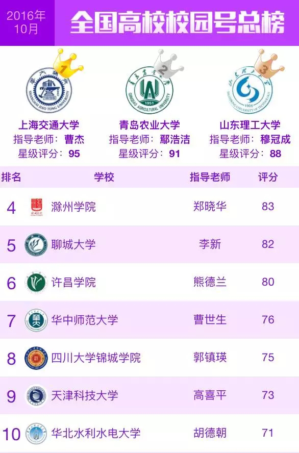 2016年9月至11月,在“腾讯&中国青年报”共同推出的全国578所高校校园号排名榜单中,我校QQ校园号(xcu1942)先后获得“全国高校校园号排行榜”10月份榜单第六名、11月份榜单第八名的好成绩,原创文章《开学迎新直播---学长学姐带你逛许院》《表白|许院14级的薛汐,我一生长情只为你》《有关欣赏初雪及照顾好南方人的通知》先后荣登专家点评“优秀原创内容榜”。
