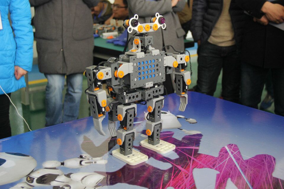 开幕式上,我校与某公司联合开发的NAO机器人进行了《中国太极》、《童年霹雳》舞蹈表演。