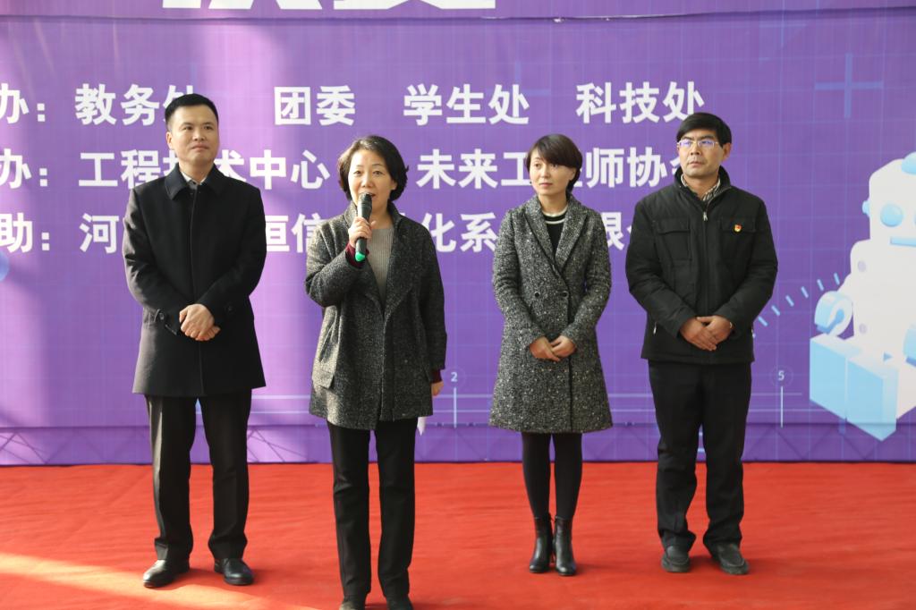 黄怡俐副院长在开幕式上致辞。她说,机器人技术是智能社会创新发展的风向标,机器人创新实践活动从一个侧面反映了国家信息化与自动化基础研究的普及水平,它既是“科教兴国”战略方针的具体体现和创新举措,也是大学生充分表现科技思想和行动的舞台,同时也是培养学生动手能力、团队能力、创新能力,激发学生科学思维、科学创意、科学智慧的活动载体。