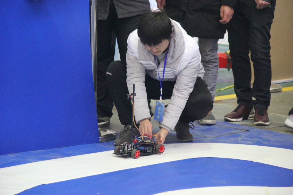 图为循迹机器人比赛现场