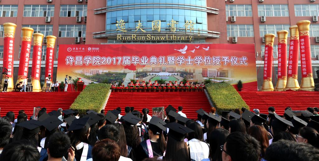 6 月9日上午,我校在弘毅广场举行2017届毕业典礼暨学位授予仪式。4878名2017届本科毕业生被授予学士学位。黄云云等166名同学荣获省级优秀毕业生称号,刘文静等302名同学被评为校级优秀毕业生,另有赵鹏艳269名考取硕士研究生的学生受到表彰。院长赵继红等学校领导和学校学士学位评定委员会委员,为毕业生授予学位证书,并为他们拨穗正冠。