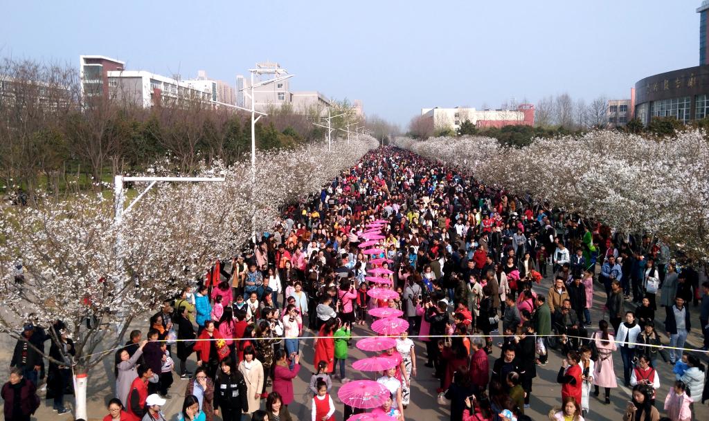 阳春三月,又是学校樱花烂漫的时节。十一年前,樱花在美丽的许院落户,2013年初具规模,而今已是声名鹊起。为更好向游客和广大市民、师生呈现樱花美景,让大家感受高校校园独特的文化品位和魅力,学校今年举办首届樱花文化节。短短几日,市民、游客来校赏花的人数已超五万人,许院樱花盛景更是“刷爆”朋友圈。樱花枝头绽放,校内游人如织,特别是学校通过免费向公众开放校内文化场馆、开展中华传统礼仪展示、樱花茶艺茶道、无伴奏合唱、青春快闪等一系列特色文化活动,更是让市民纷纷点赞,称“许昌学院的樱花节办出了大学范儿、文化味儿……”