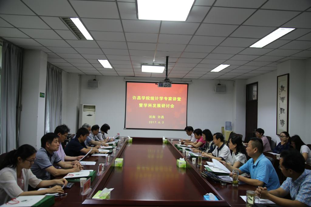 6月3日,我校在办公楼第一会议室举行“统计学专家讲堂”暨“学科发展研讨会”。北京大学艾明要、广州大学张崇岐、华东师范大学张应山、上海师范大学岳荣先、国防科技大学段晓君、河南师范大学庞善起等多名专家教授应邀出席,我校学科建设办公室、数学与统计学院等单位负责人及相关教师参加了本次讲堂和研讨会。