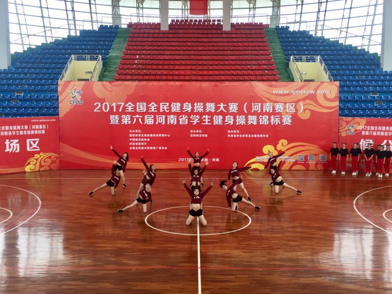 近日,全国全民健身操舞大赛(河南赛区)暨第六届河南省学生健身操舞锦标赛在信阳师范学院落下帷幕。我校健美操舞代表队荣获JAZZ规定动作大学本科甲组(普通院校)特等奖。