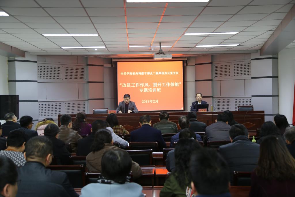 2月16日至17日上午,我校在办公楼第三会议室举办了机关科级干部及二级单位办公室主任“改进工作作风、提升工作效能”专题培训班。党群机关、行政机关、创新创业学院、继续教育学院科级干部,二级学院办公室主任(副主任),后勤管理服务中心部分科级干部共计130余人参加了此次培训。党委副书记马超出席了开班讲座。
