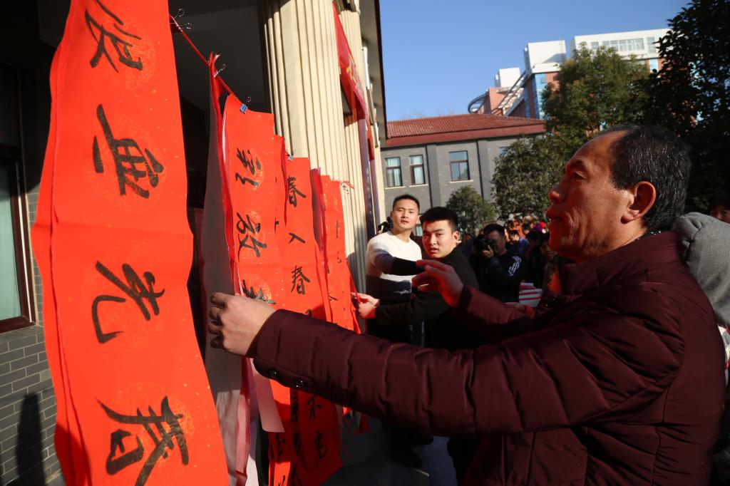校工会主席杜志傲表示,为广大教职工送春联,也是送新春的祝福。希望通过送春联活动把文化惠民送到我校教职工的家里。