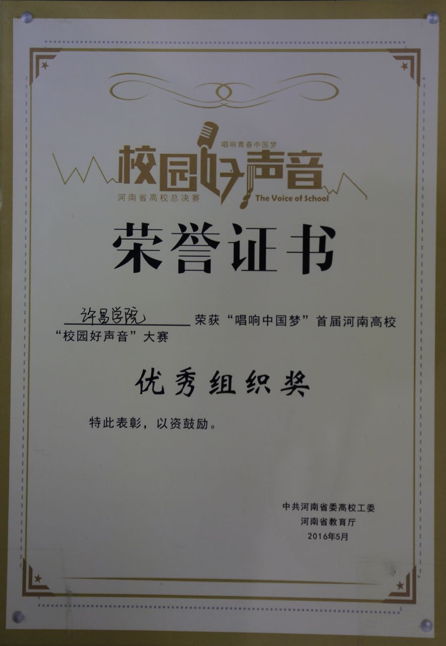 6月1日,中共河南省委高校工委办公室、河南省教育厅办公室下发《关于公布第二届全国高校“校园好声音”大赛河南省高校决赛的获奖结果的通知》(教办思政〔2016〕323号),我校荣获优秀组织奖,我校音乐舞蹈学院张锋锋老师获得优秀指导教师奖。