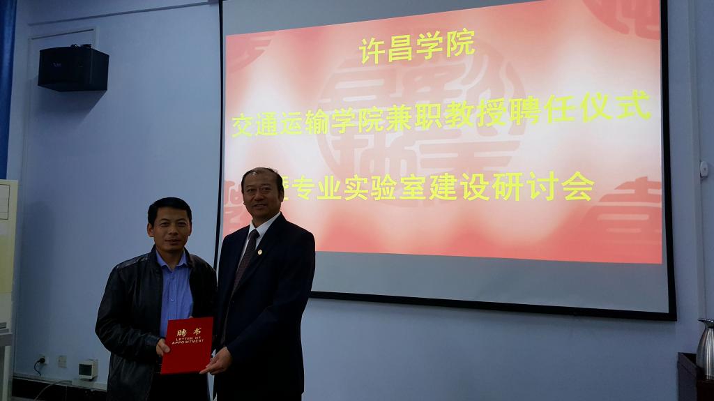 会上,崔斌副院长为东南大学李铁柱教授颁发了兼职教授聘任证书。他希望李铁柱教授积极发挥自身优势,在我校交通运输学院学科专业建设、创新团队打造、科技创新和教学工作等方面发挥引领和核心作用,为许昌学院高水平应用技术大学建设做出自己应有的贡献。李铁柱教授表示,作为一名许昌人,愿意为许昌学院交通运输学院添砖加瓦,为家乡的建设贡献自己全部的力量。