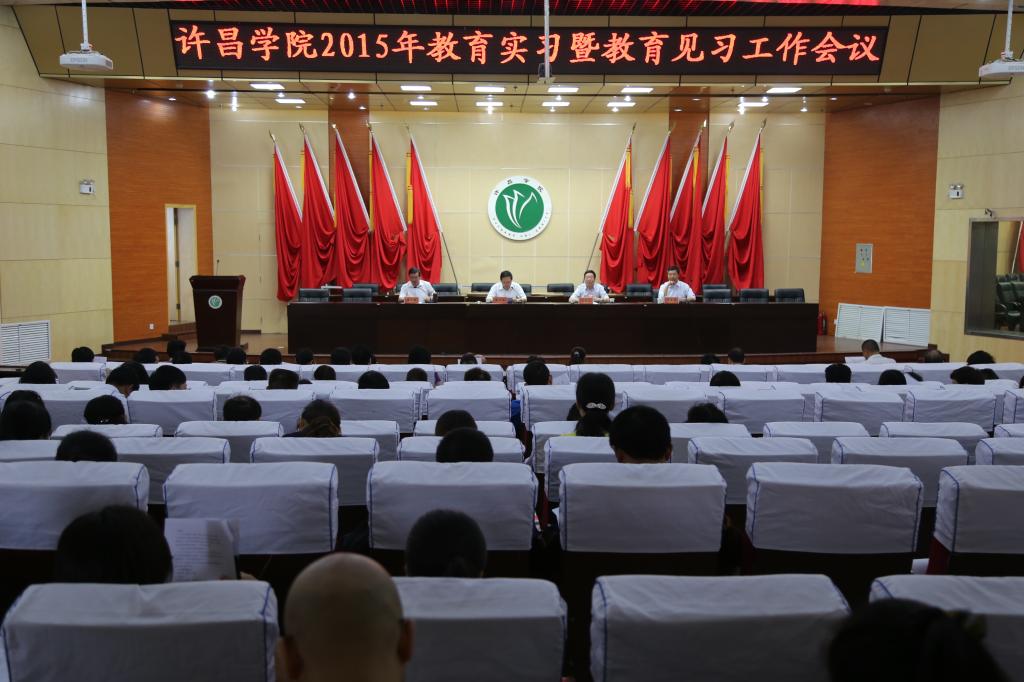 9月15日上午,我校与许昌市教育局在学术报告厅联合召开了2015年教育实习、教育见习工作会议。许昌各市、县、区教体负责同志,优秀实习学校校长和许昌市直、许昌县、魏都区、东城区、经济技术开发区的实习基地负责人及实习带队教师等190余人参加会议。副院长赵正风出席会议,会议由我校教务处处长张元敏主持。
