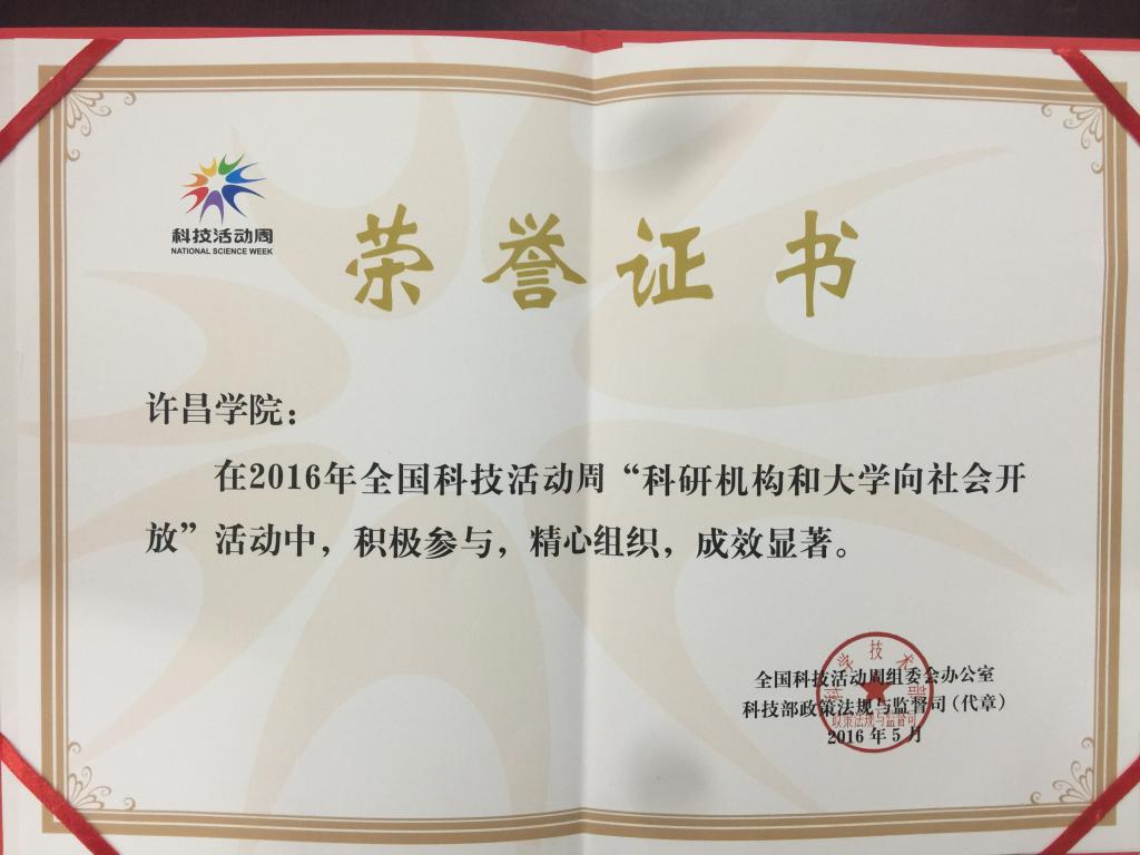 日前,全国科技活动周组委会对2016年度科技活动周“科研机构和大学向社会开放”活动的先进单位和个人进行了表彰,我校被评为2016年全国科技活动周“科研机构和大学向社会开放”活动优秀组织单位。