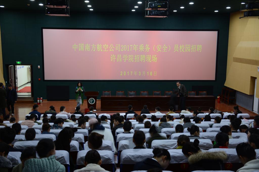 中国南方航空集团公司是中央管理的三大骨干航空集团之一。多年来,我校与南方航空公司建立了良好的合作关系,并做为空乘人员招聘面试定点单位,每年定期来校开展专场招聘,文学与传媒学院专门针对学生开展面试培训,先后有近20名毕业生成功应聘到该公司就业,为我校毕业生打造了优质的就业平台和良好的就业途径。(图片由创新创业学院提供)