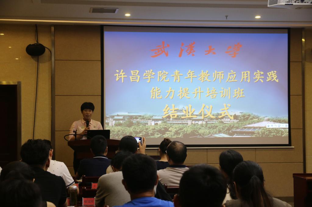 7月2日至8日,我校2016年青年教师应用实践能力提升培训班在武汉大学举行。全校各二级学院推荐的56位青年骨干教师参加了此次培训学习。在7月3日上午举行的开班典礼上,我校副院长崔斌出席典礼并讲话。武汉大学继续教育学院副院长梁玉兰、许昌学院人事处长肖绍俊、参加此次培训的全体学员、我校人事处以及武汉大学师资培训中心等相关负责人共同参加了开班典礼。